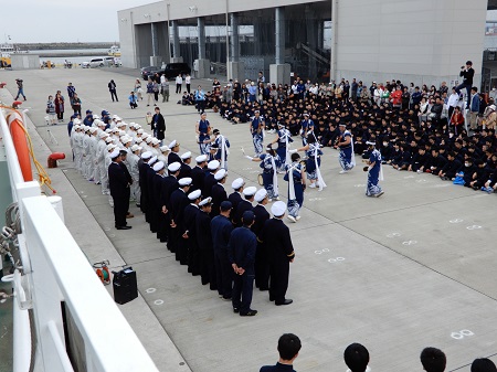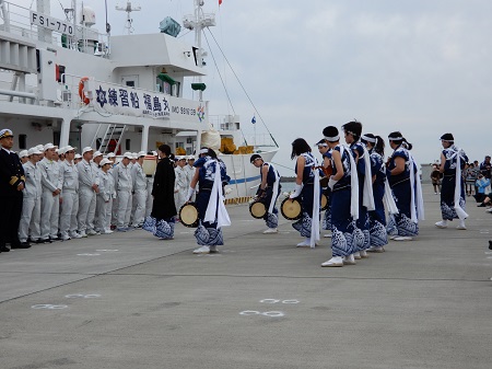 練習船福島丸の遠洋航海の成功とご安航の祈りを込めて、一生懸命に演舞を披露しました。