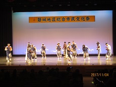 平成29年11月4日(土)、小名浜市民会館にて第40回磐城地区総合市民文化祭が実施されました。10月には展示の部が実施されましたが、今回は芸能の部が実施され、芸能の部一日目の最後に「じゃんがら念仏踊り」を披露させていただきました。