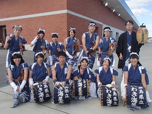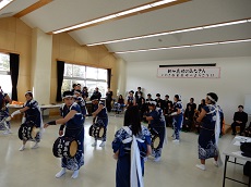 会場は出店も多く並び、生徒達も無邪気に祭りを楽しんでいましたが、出番が近づくと気持ちを切り替えて「じゃんがら念仏踊り」をしっかりと披露できました。その後に行われた「じゃんがら体験コーナー」では残念ながら人は集まりませんでしたが、じゃんがらを多くの人に体験してもらおうと、近くを通る方々に積極的に声をかけに行く姿に生徒の成長を感じることが出来ました。