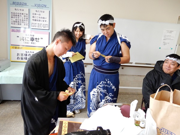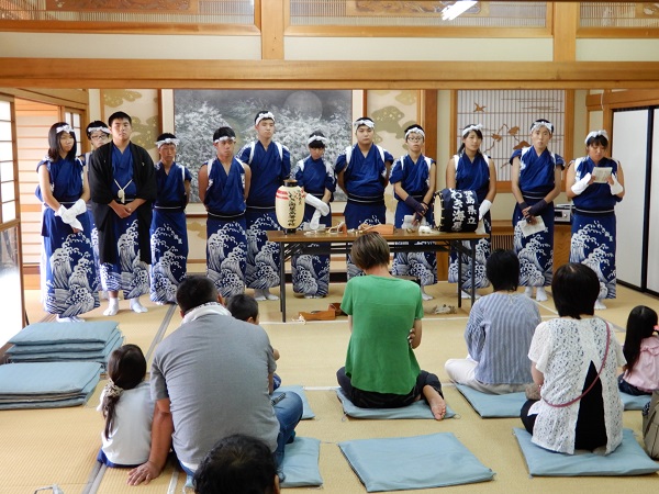 室内での披露でしたので、楽器の音が大きく強調され、歌や掛け声が聞こえなくなってしまうのではないかと心配しましたが、楽器に負けない大きな声を生徒が出していました。その演舞姿を涙を流しながら見て下さった方もいらっしゃいました。