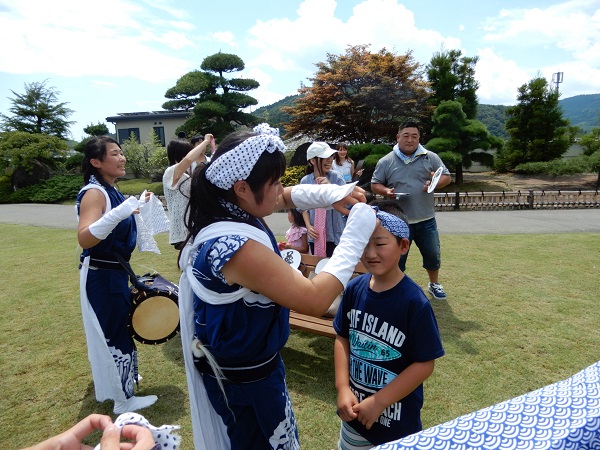 その後、手拭いの巻き方や、手踊りを参加者の皆さん、スタッフさんと練習し、最後に全員で輪を作り、手踊りをしました。