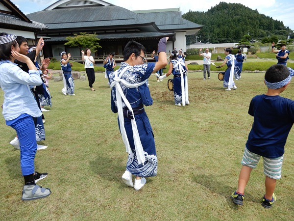 時間により簡単な説明になってしまいましたが、「じゃんがら念仏踊り」の舞の意味も話すことができましたので、その後の「じゃんがら」披露の際に、より興味を持って観賞してもらえたと思いました。