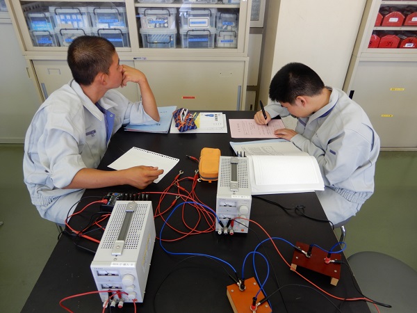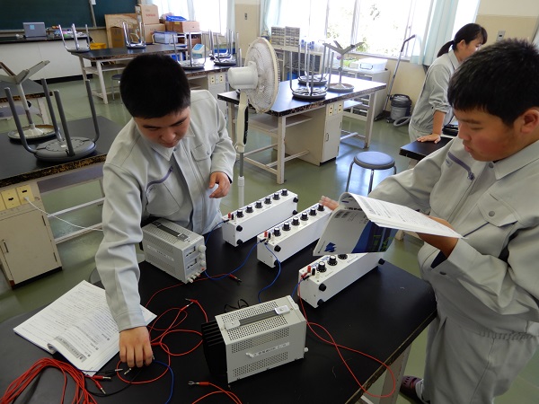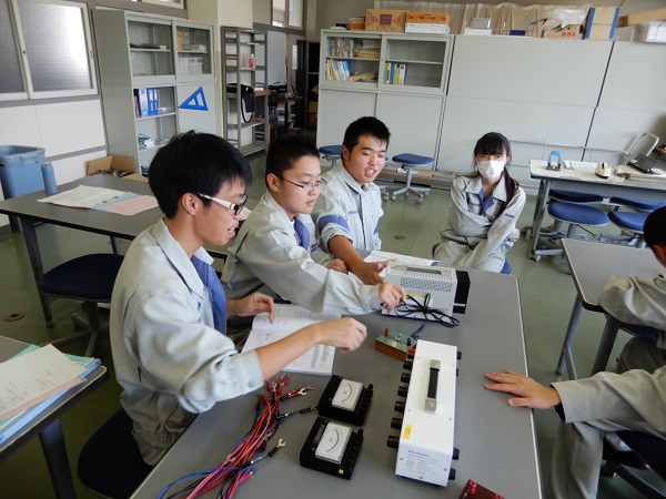 1学期から実習を行っていますが、回路の組み立ての時間のかけ方に違いが見え始めました。