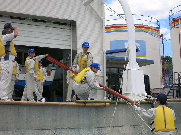 本日の1年生の水産海洋基礎では、カッター実習を行いました。