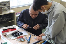 2017年11月2日 13時11分この実習ではテスタ作りをしていますが、はんだ付け作業や校正作業に苦戦しながらも、全員一生懸命に作業しています。