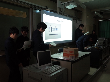 情報通信科3年生が約8ヵ月間取り組んできた課題研究の学科内発表会を実施しました。プログラミングによるLEDの残像回路作成や航海用電子機器への応用など、情報通信科ならではの様々な発表がありました。今後もさらに研究を続け、内容の深化を図ってほしいと思います。