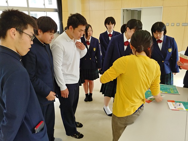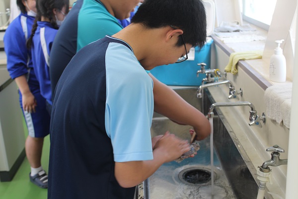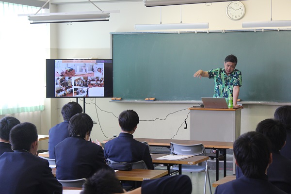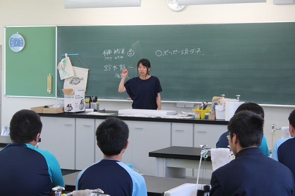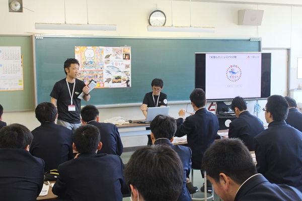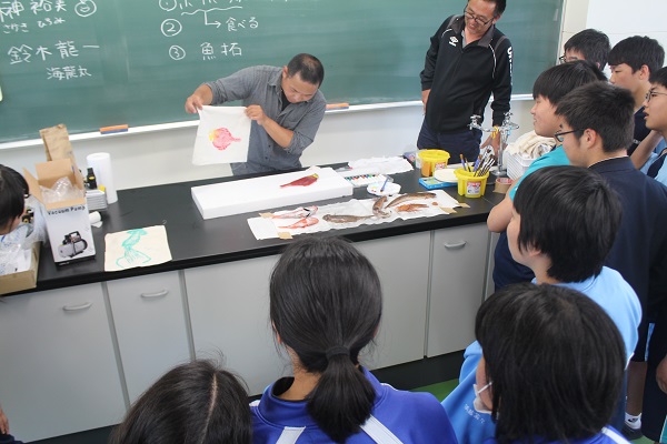 本校 水産クラブへ依頼したい件などのお話があり、生徒は興味津々に話に聞き入っていました。