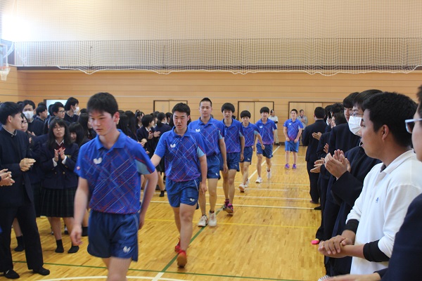 生徒会長は「県大会へ向けた練習は厳しいと思うが、その厳しさを乗り切って頑張ってほしい」と