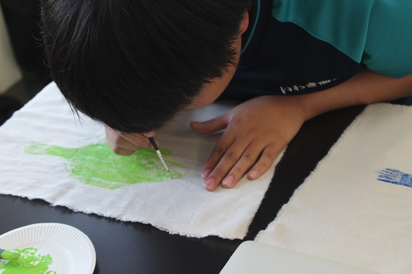 布をかぶせ、絵具がのるように丁寧に全体をなぞったら布を取り外します。