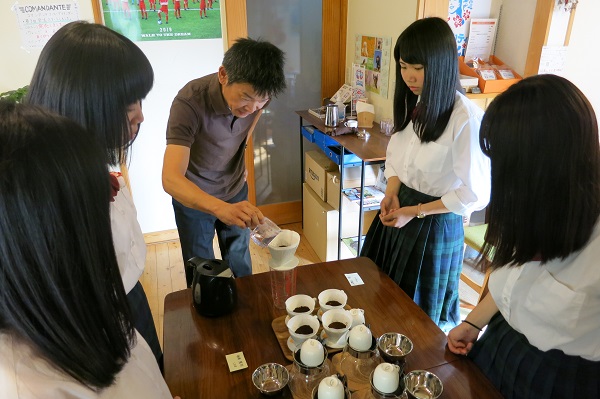 4人ぞれぞれ原産国の違うストレートコーヒーを淹れ、