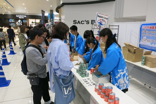 水産クラブの生徒が食品システム科の実習で制作した缶詰の販売を行いました。