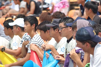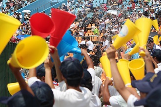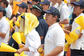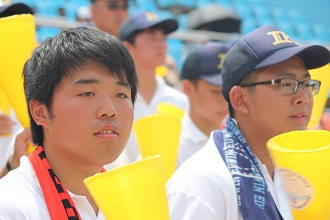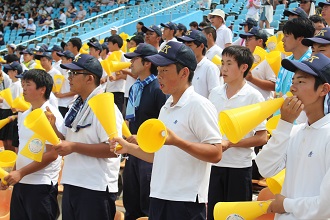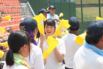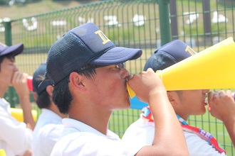 いわきグリーンスタジアムにて、野球部の応援を行いました。