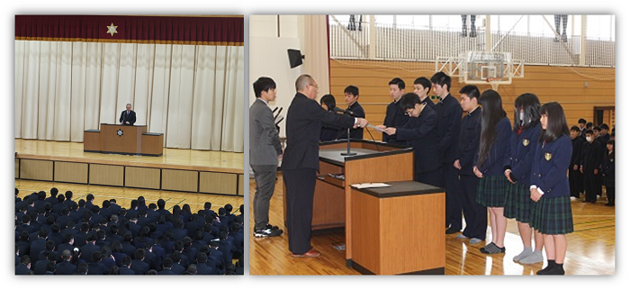 平成30年2月28日、本校体育館にて平成29年度表彰式及び卒業記念品贈呈式が実施されました。