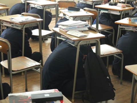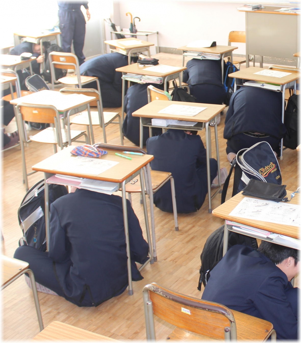 この安全確保行動訓練は、地震が発生した時、自分の身を自分で守るために真っ先に行うべき安全確保行動