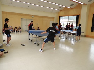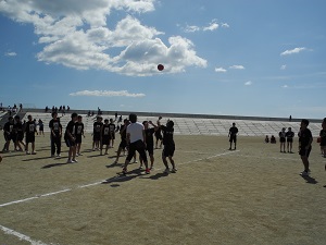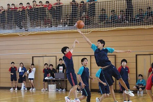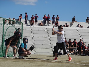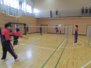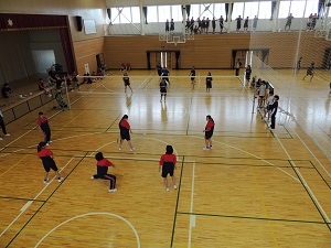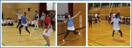 講演後、小椋さんはユニホームに着替え実技指導をしてくださいました。エキシビジョンマッチで小椋さんと生徒がゲームを行い、小椋さんのスマッシュが決まると体育館は大きな歓声に包まれました。