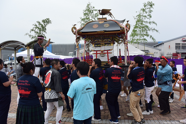 お神輿は淡路島の伊弉諾神宮から「アクアマリンふくしま」に寄贈されたものでいわき市神輿会の皆さんと本校の野球部員、カッター部員、教職員が担ぎ手となり、アクアマリンふくしまを出発点として付近を練り歩きました。