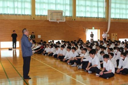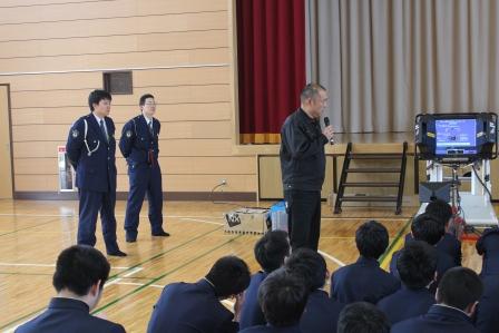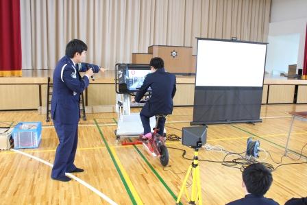 平成29年5月12日、いわき東警察署の職員の方々をお招きし、1年生を対象に交通講話を行いました。交通ルールや自転車走行中の注意などについてご指導を頂きました。シミュレータ機器を使用して、実際に起こりうる事故を体験し、生徒達にとって、とても貴重な時間となりました。