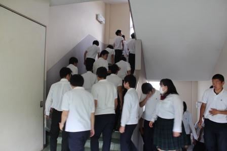 6月12日(月)5・6校時目に本年度最初の避難訓練が実施されました。今回の避難訓練は、地震発生の後、津波警報が発表された想定で行われ、第1避難訓練として、大地震発生を告げる緊急放送の後、全生徒が本校の校舎3階と4階に避難しました。また、第2避難訓練として、津波来襲まで時間があるため、高台にある小名浜高校(第2体育館)に再度避難するという2つの訓練内容で行われました。今回の避難訓練は昨年度と比べ、生徒・教員共に迅速な避難ができ、避難時間を短縮することができましたが、課題もみえた避難訓練となりました。常日頃から、敏速かつ安全な避難ができるように、今後も改善していきます。