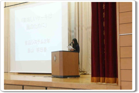 | 食品システム科3年 | 畠山明日香 | 「 美味しいケーキは誰のために 」 |