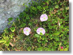 本校の玄関前植え込みに、ハマヒルガオの花が数輪咲いていました。