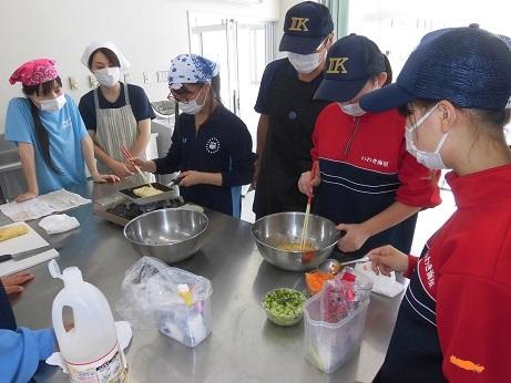 調理活動が始まって3週間が過ぎましたが、少しずつ包丁の扱いや調理の進め方の手際がよくなってきました。1年生から3年生まで協力し合いながら楽しく取り組んでいます。