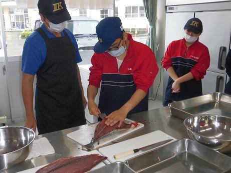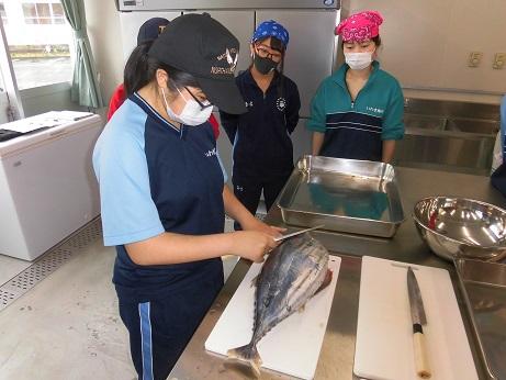7月4日(土)は、カツオの調理を行いました。カツオのおろし方から挑戦しました。