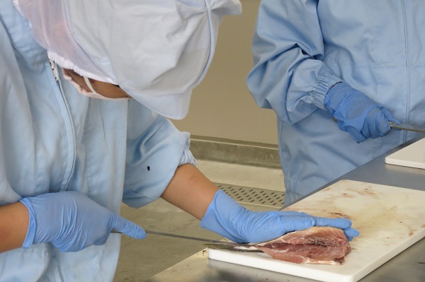 本日の水産クラブ 食品調理チームはアジを使って調理を行いました。