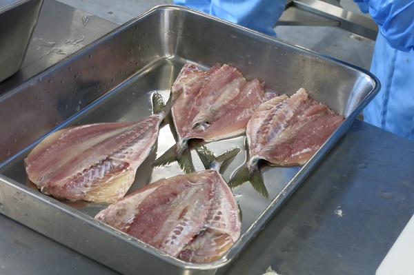 3枚におろしたフライ、背開きのフライの2種類を作りました。
