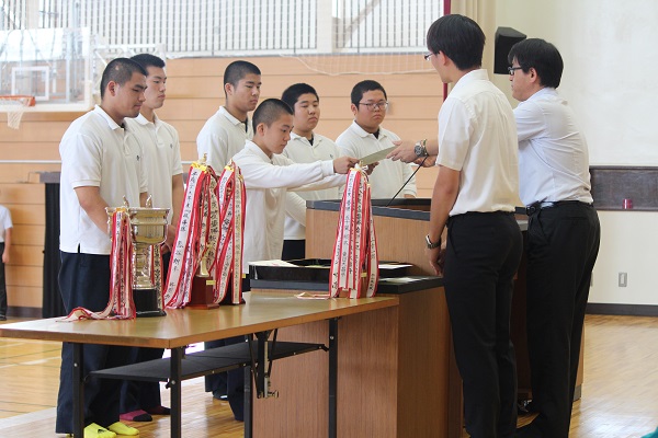 様々な場面で活躍した生徒が登壇し、賞状や盾などを受け取りました。