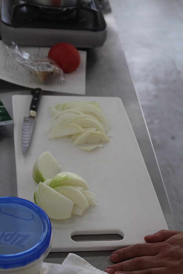 まずは,野菜の下準備から始まります。ただ野菜をカットすれば良いという話ではないようです。