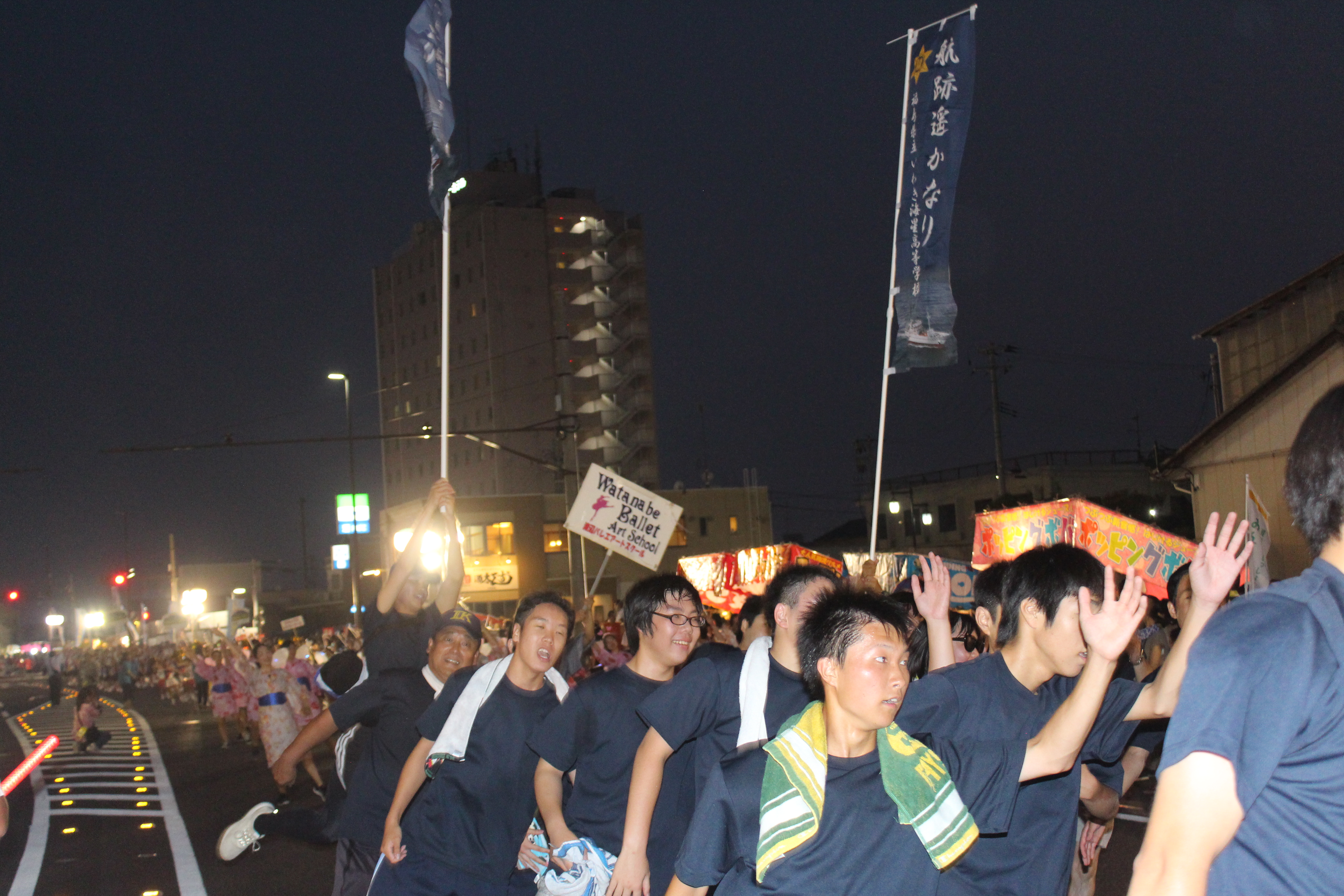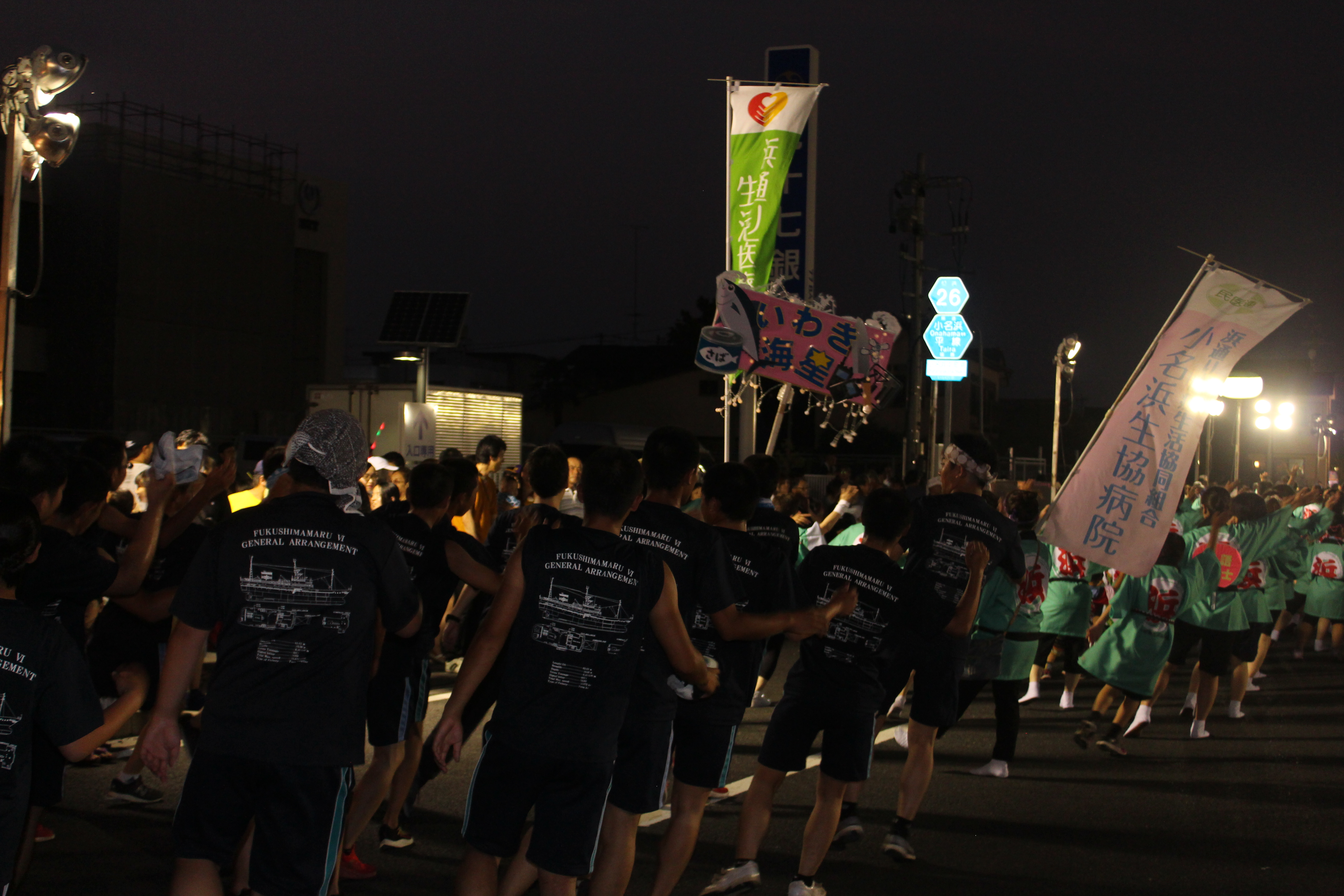 いわき市で毎年行われている「いわきおどり小名浜大会」に今年も参加しました。小名浜を盛り上げたいという熱い想いから、昨年を超える50名の生徒が参加してくれました。