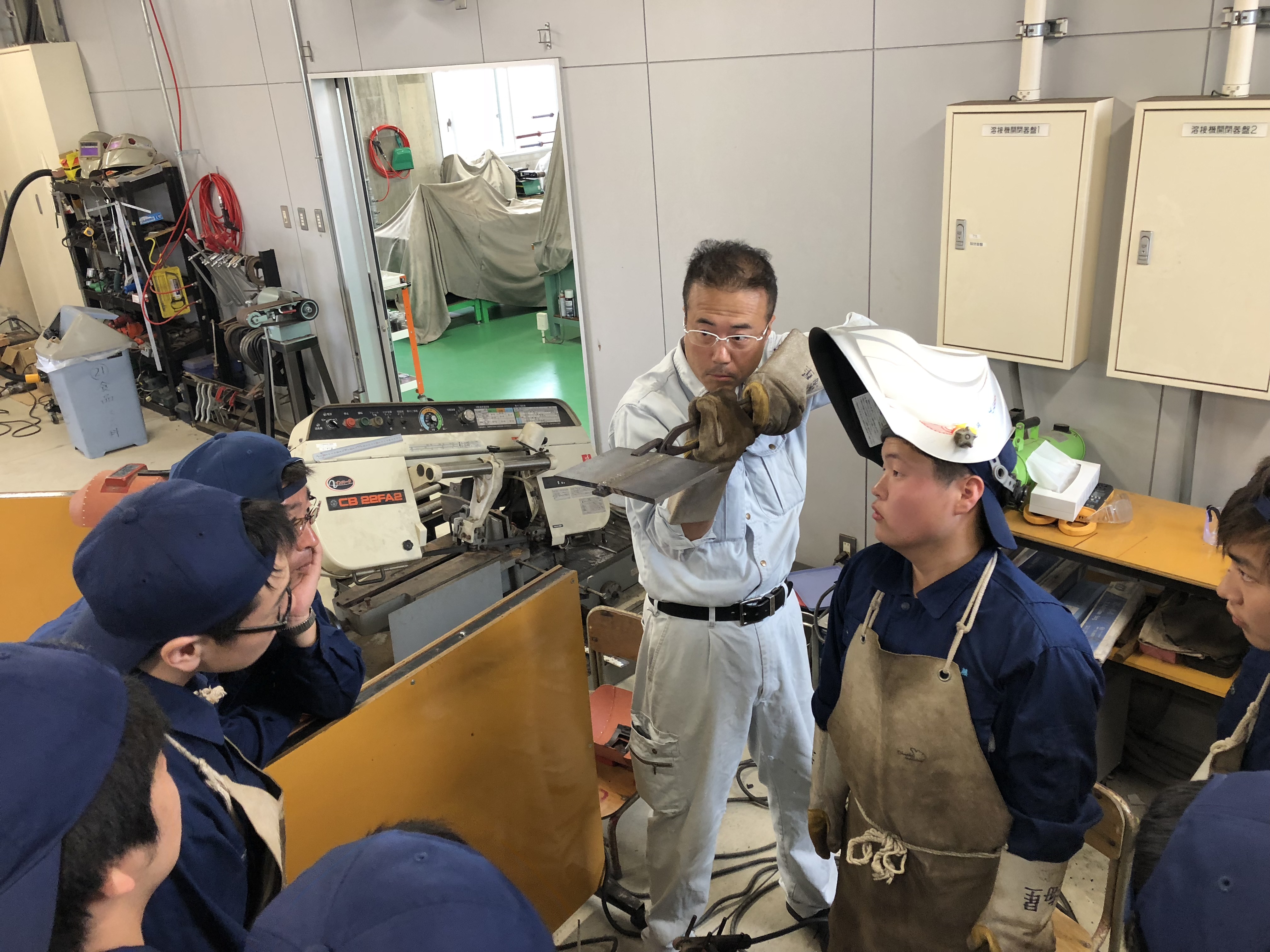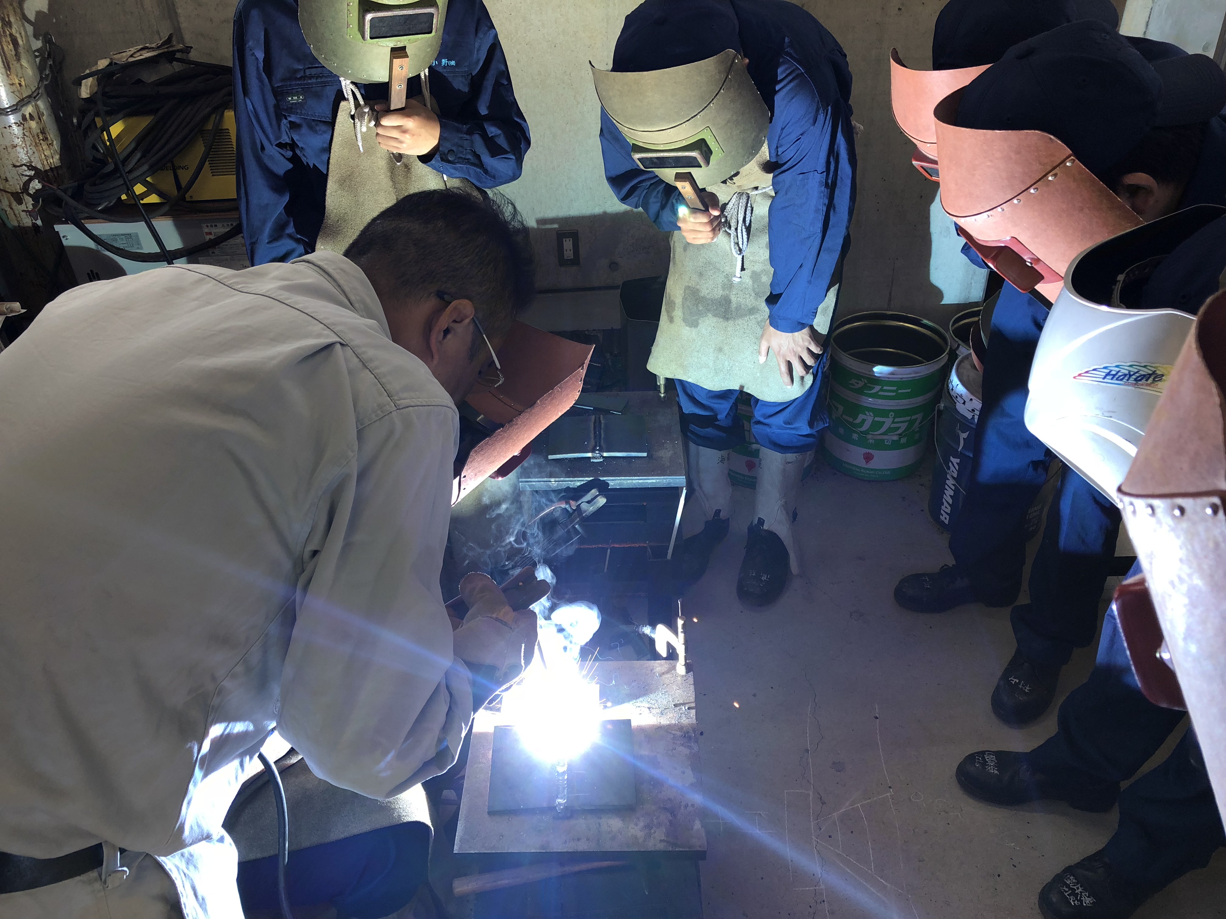 5月30日(水)課題研究の授業において、株式会社齊組工業の方が来校し、溶接技術競技会に向けてご指導並びにご助言をしていただきました。