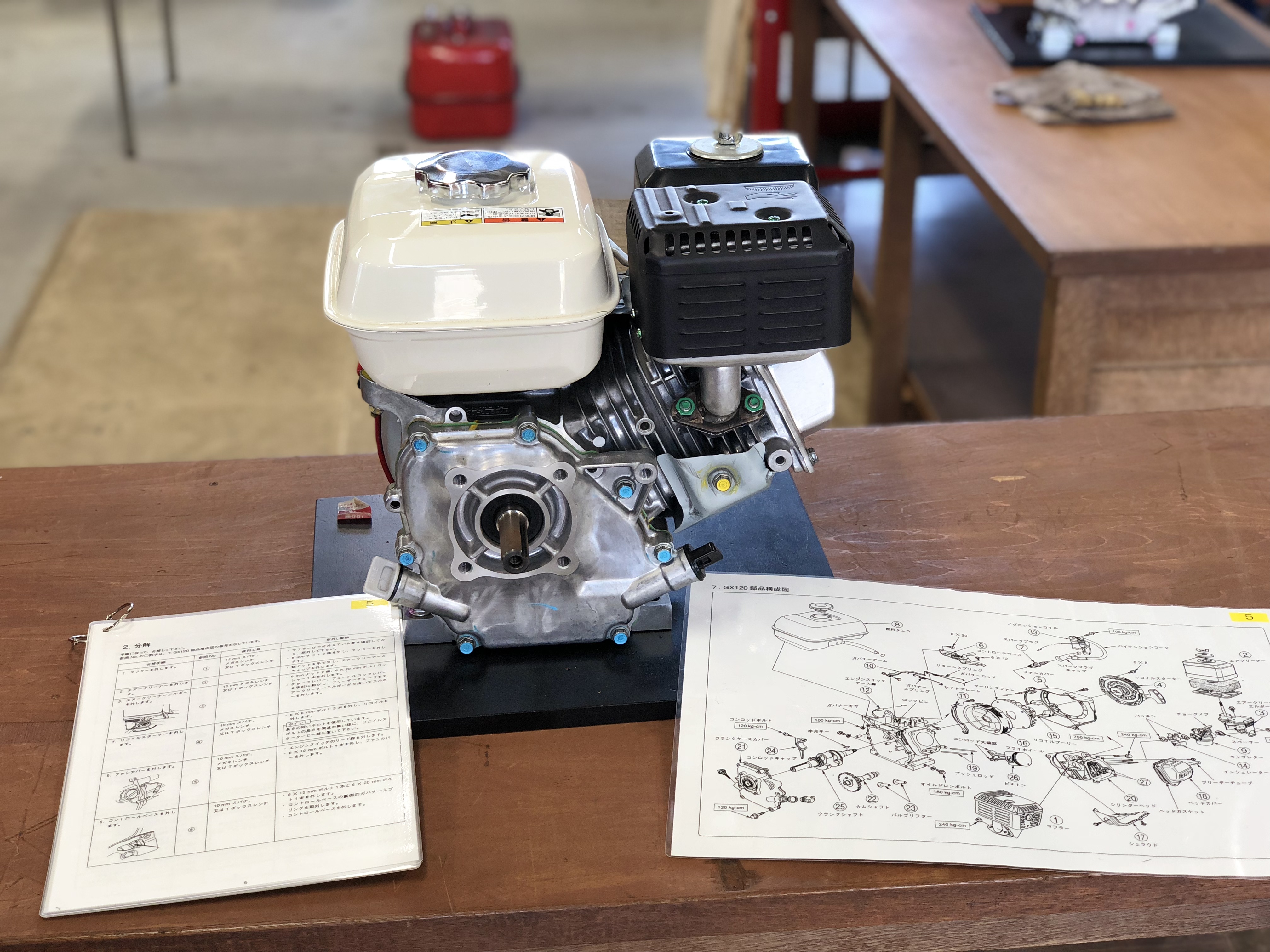 今年度も自動車整備の授業で「HONDA GX120エンジン」の分解・組立を行います。先日行われた4月20日(金)の最初の実習では、各部の名称や構造を理解しました。次回の実習は、引き続きエンジン分解を行う予定です。