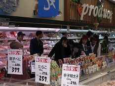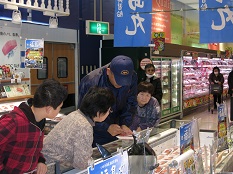 遠洋航海実習で漁獲したマグロの一般販売がスーパーマルト様で行われました。