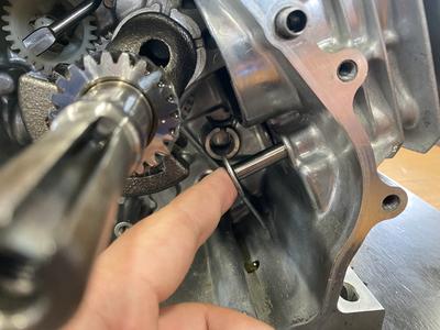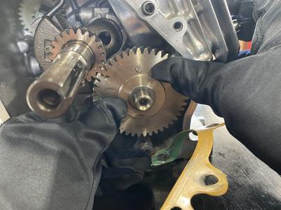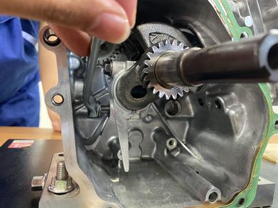 ポイント:ガバナーギヤとクランクシャフトのガバナドライブギヤがかみ合っていることを確認する。