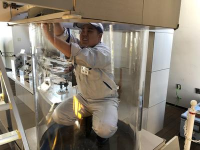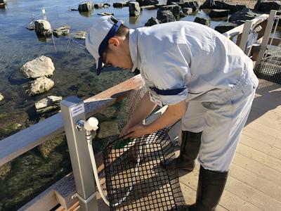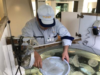本日は、11回目のアクアマリンふくしまの体験実習を実施しました。今回の実習は、貝とクラゲの水槽を清掃しました。どちらともアクリル板の水槽のため傷をつけないよう慎重に、その他の部品は丁寧に洗ってくれました。