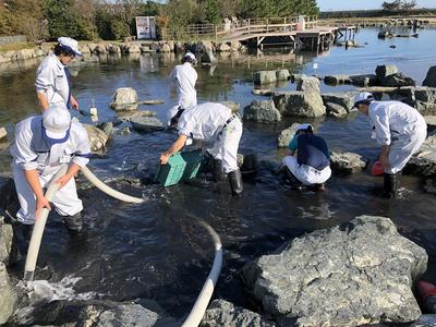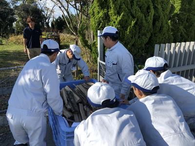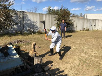 本日は、10回目のアクアマリンふくしまの体験実習を実施しました。今回の実習は11月9日(土)に子ども向けに行われるイベントの手伝いをしました。キャンプファイヤーに必要な薪を割り、アジの手づかみ体験をさせるために蛇の目ビーチの清掃活動を行いました。