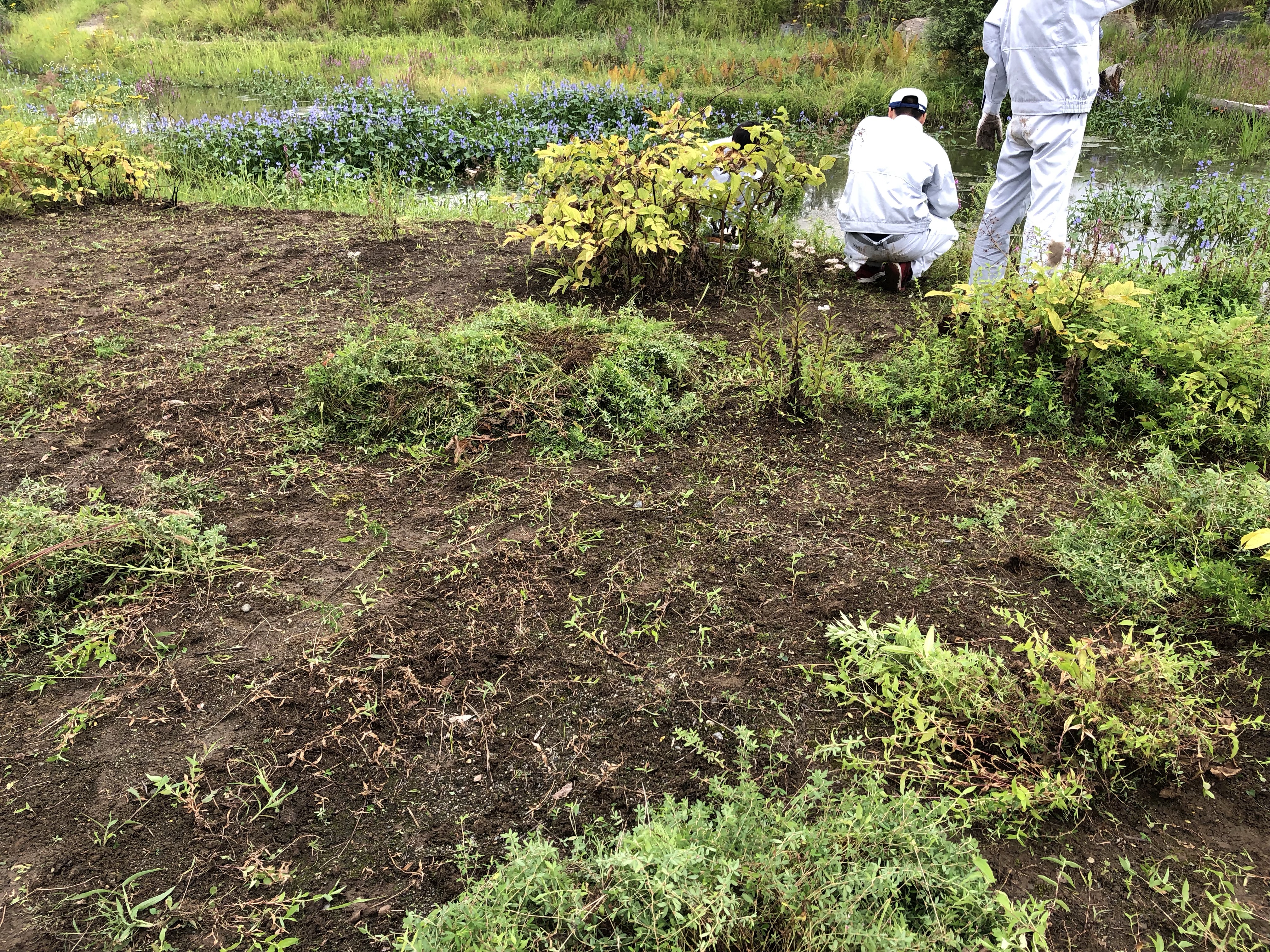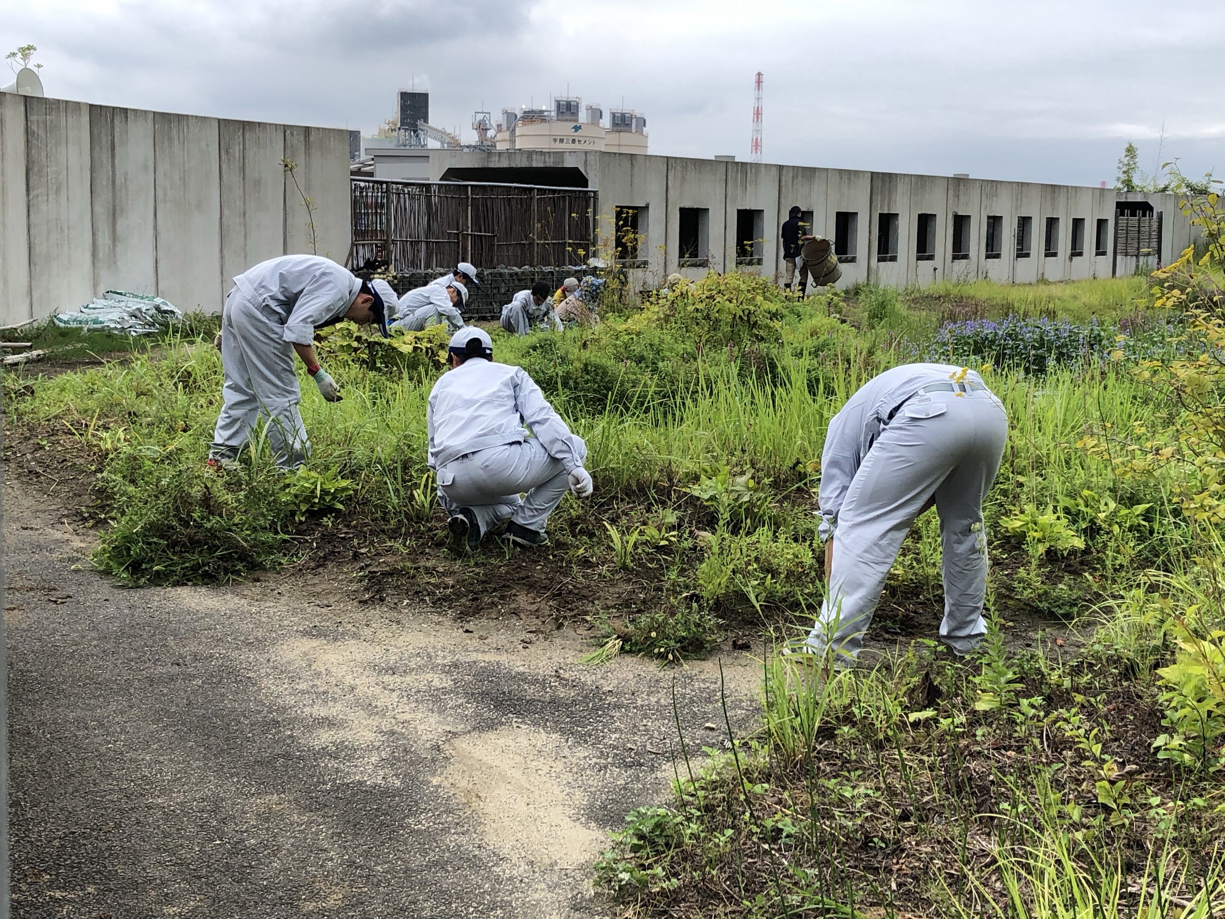本日は8回目のアクアマリンふくしまの体験実習を実施しました。今回の実習は、縄文のこどもどうぶつえんの周辺の草むしりを行いました。活動範囲が広いためボランティアの方々と一緒に、時間の許す限り活動しました。