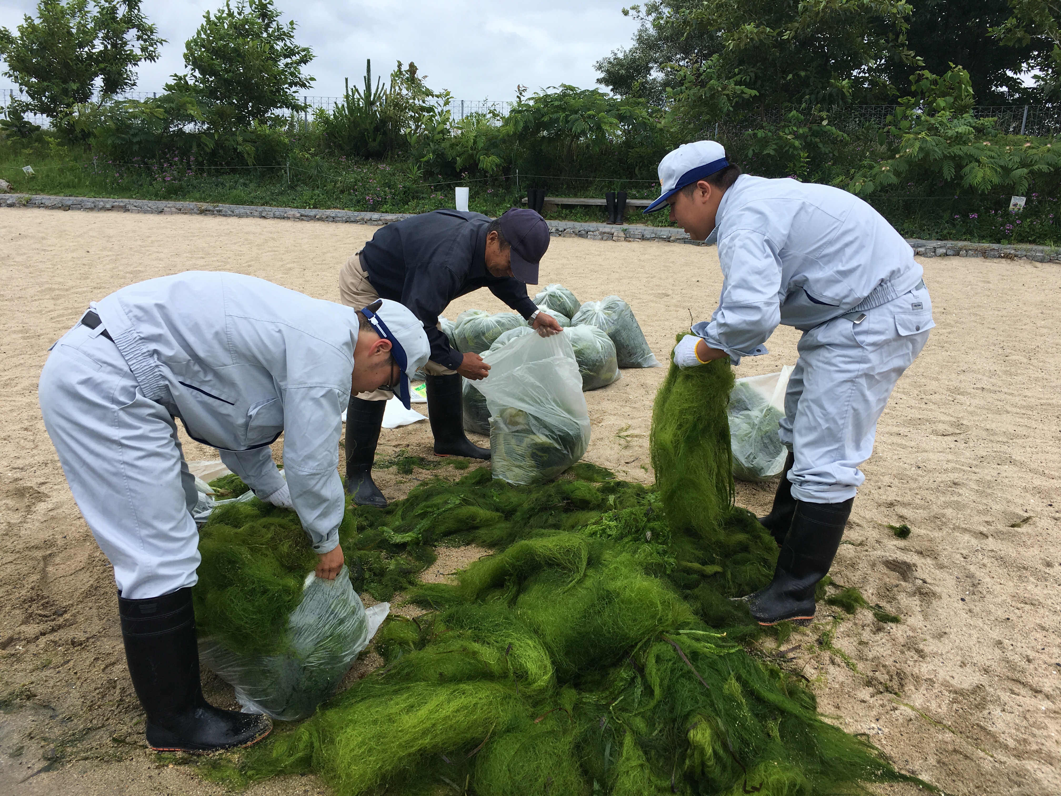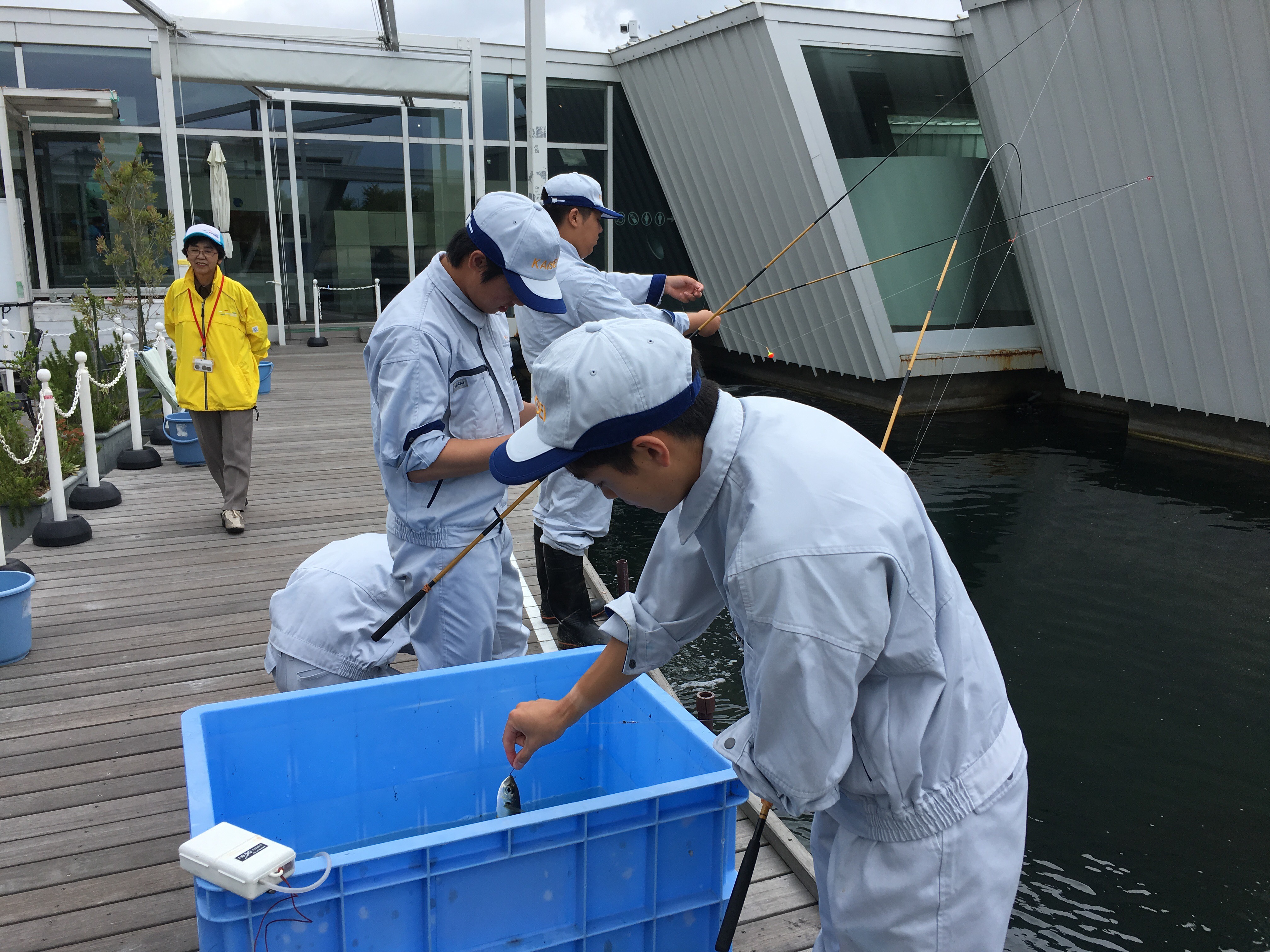 数珠藻を処理するのは想像以上に大変らしく、意欲的に生徒たちが取り組んだ姿を見て、ボランティアの方々から感謝の言葉をいただきました。また、今回の体験で初めてアジ釣りを経験させてもらい、更にはサプライズでアジのフライをいただき、生徒たちは満面の笑みで体験実習を終えることができました。