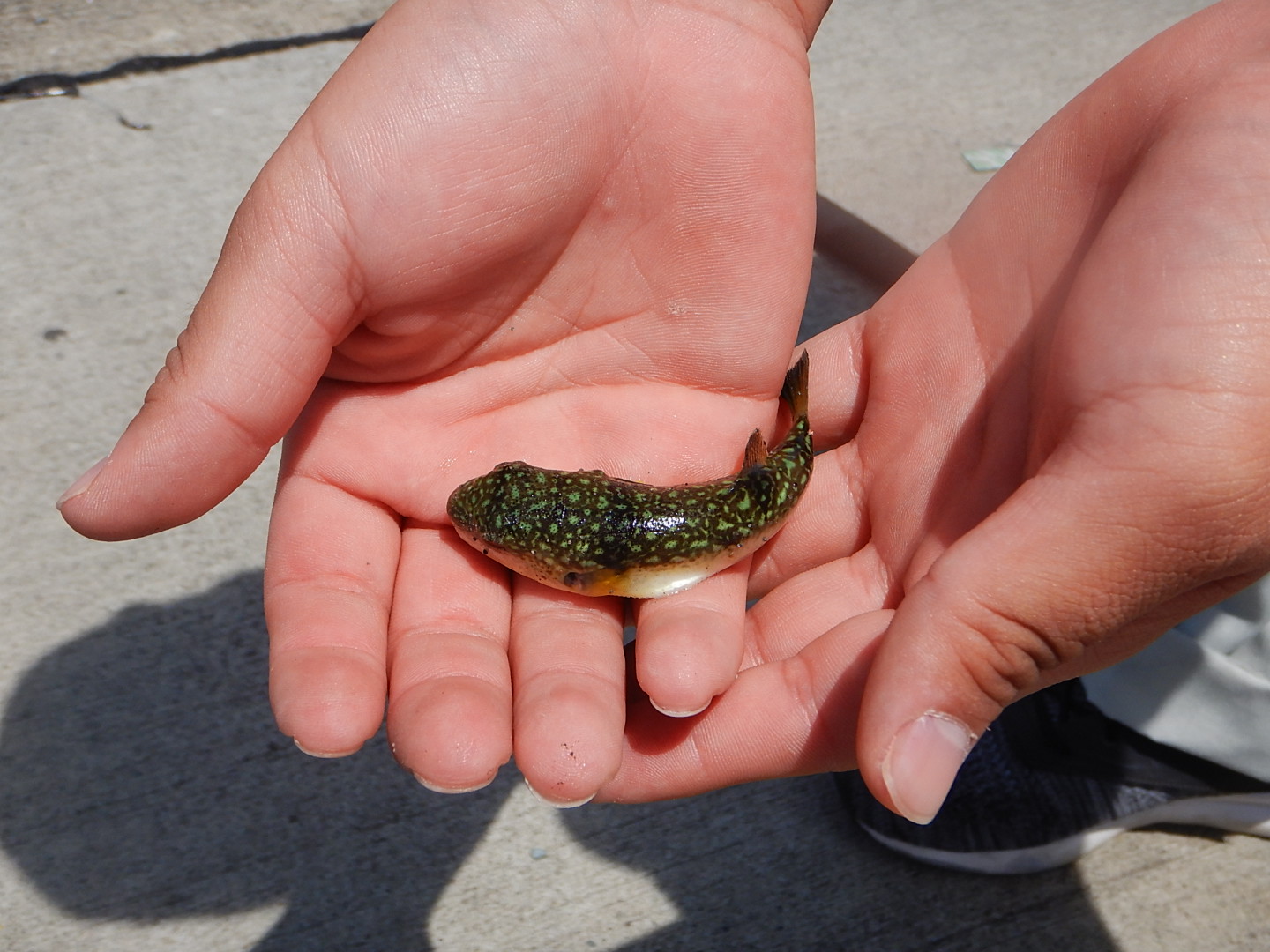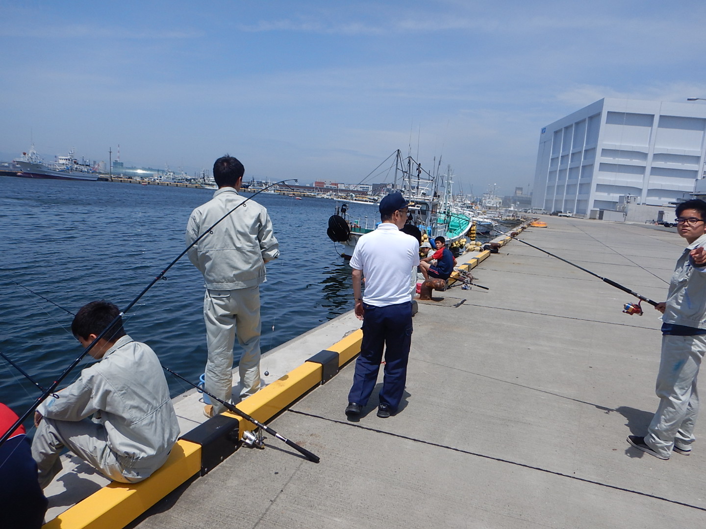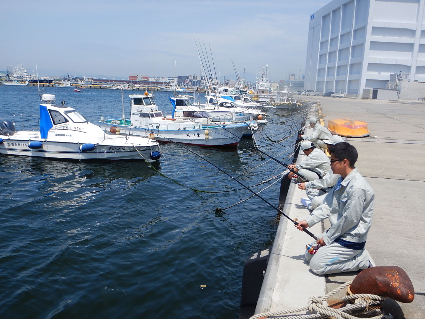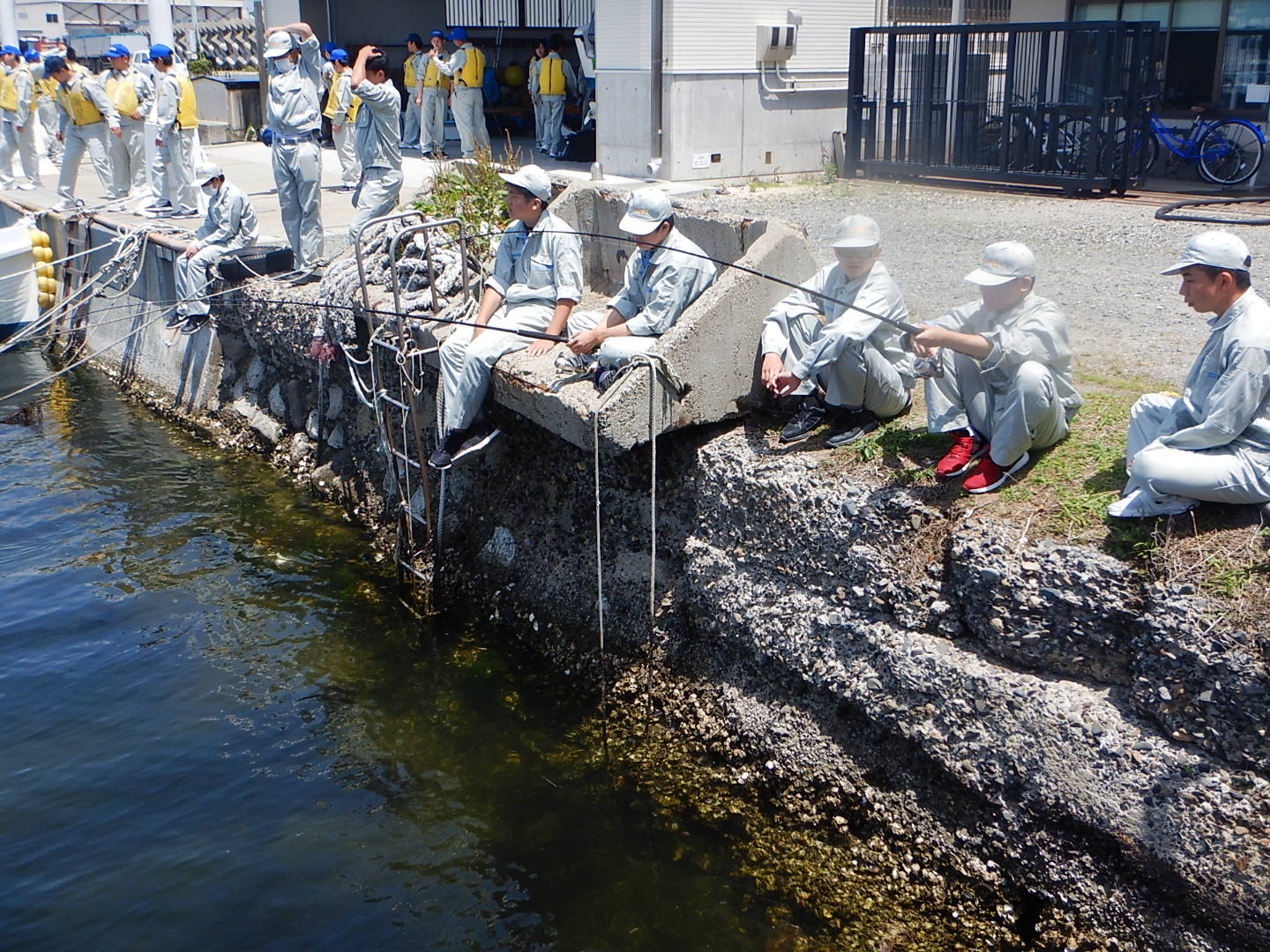 今回は授業時間が2時間しかなかったので、船を出さないで艇庫前からの釣りになりました。