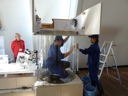 アクアマリンふくしまに行ってきました⑯ 2017年10月31日 15時25分 <H29-107>海洋科2年生の「総合的な学習の時間」でアクアマリンふくしまに行ってきました。本日は、ミズクラゲ水槽の掃除とBIOBIOかっぱの里でリーフフィッシュの餌(ヌカエビ)を採集しました。ミズクラゲ水槽の掃除中綺麗になったミズクラゲ水槽ヌカエビを採集しています いいね 1