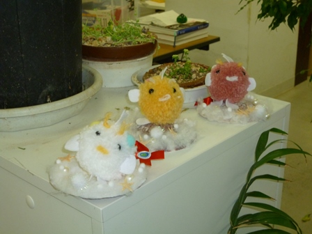 ワークショップ(ナメダンゴのマスコット作り)の準備中