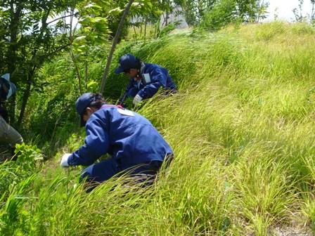ムカシヨモギとセイタカアワダチソウの除草作業
