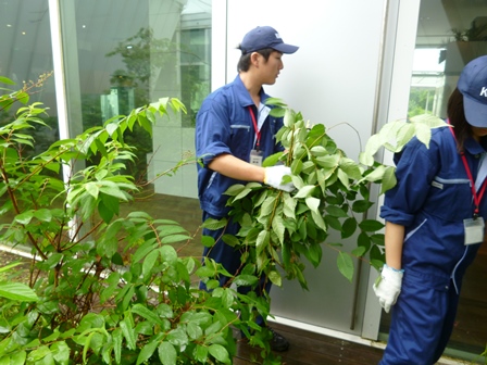 中庭の除草作業
