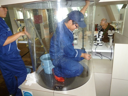 本日は、中庭の除草作業とミズクラゲ水槽の掃除を体験してきました。