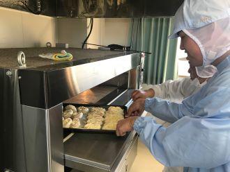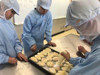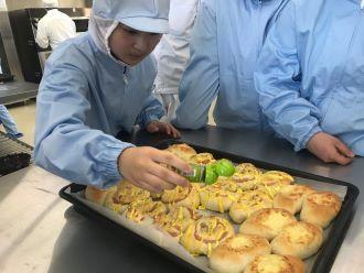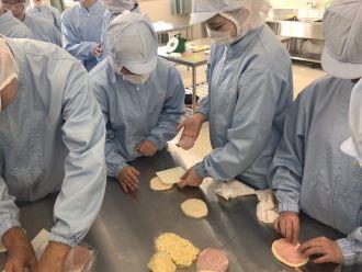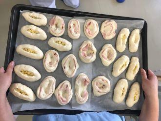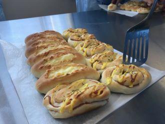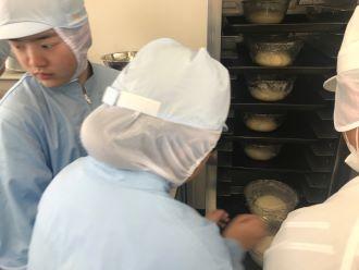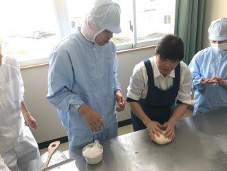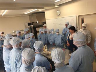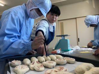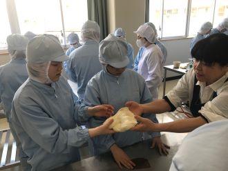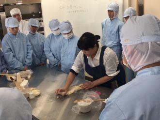 食品システム科1年生を対象にチーズクッペ、ハムマヨの2種類のパンについて作り方を教えていただきました。