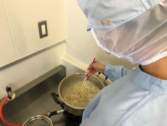 切った麺を熱湯で煮ていきます。