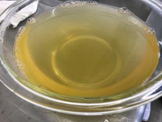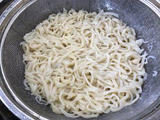 煮終わった麺はすぐに冷水につけ、しっかりと冷めたら麺の完成です。