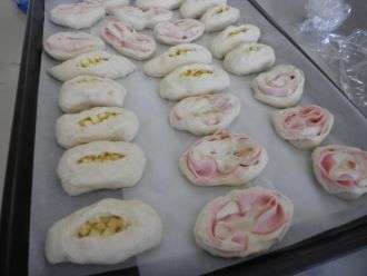 今回はチーズクッペ、ハムマヨの2種類のパンの製造について教えていただきました。