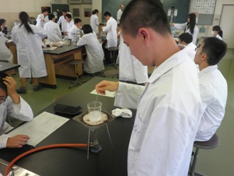 1年生では水産海洋基礎、2年生では総合実習、3年生では課題研究で、様々な実習を行ないます。次の実習の様子は、2年生が行なっている缶詰製造の実習です。1校時から6校時まで実習を行なうこともあり、知識や技術に加え、仕事に対する態度や忍耐力も養われます。